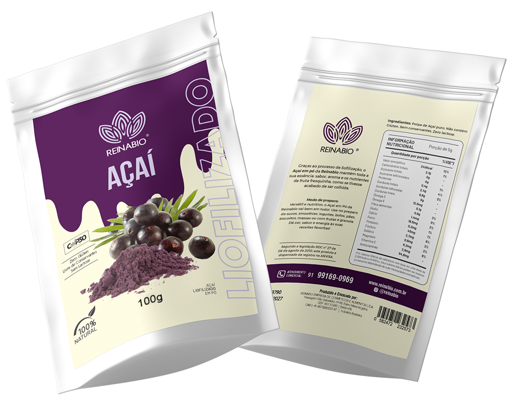 Graças ao processo de liofilização, o Açaí em pó da Reinabio mantém toda a sua essência: sabor, aroma e os nutrientes da fruta fresquinha, como se tivesse acabado de ser colhida.