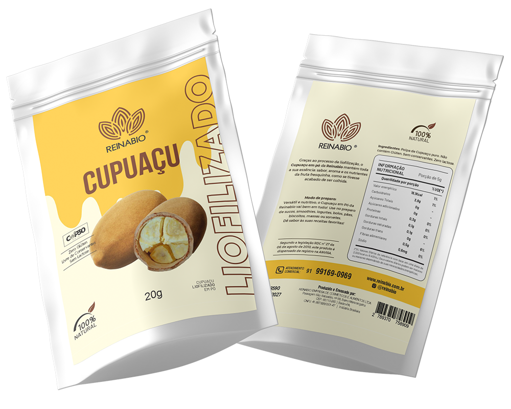 Graças ao processo de liofilização, o Cupuaçu em pó da Reinabio mantém toda a sua essência: sabor, aroma e os nutrientes da fruta fresquinha, como se tivesse acabado de ser colhida.